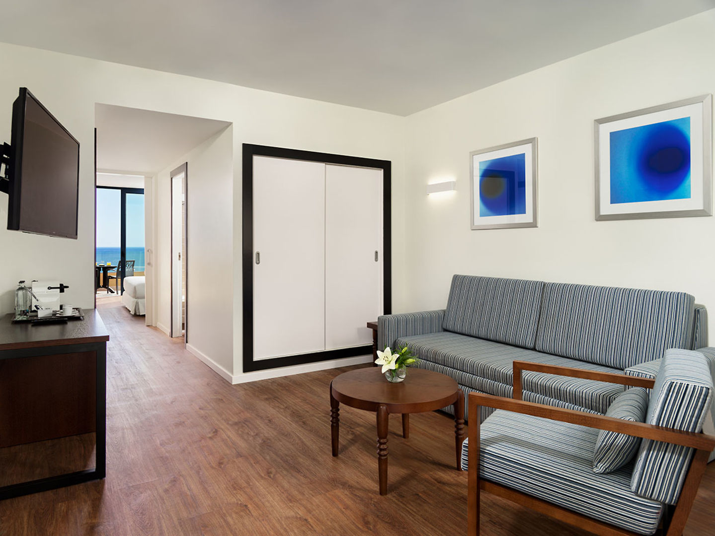Het hotel heeft meerdere accommodatiecategorieën, waaronder standaardkamers, superior kamers met zeezicht, ruime junior suites en Privilege‑junior suites met exclusieve extra’s zoals toegang tot het thalasso‑centrum.