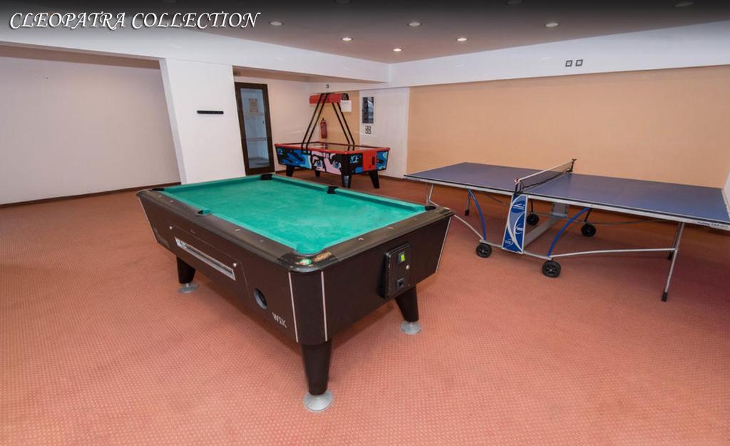 Het hotel heeft een 24‑uurs receptie met meertalig personeel en basisvoorzieningen zoals bagageopslag, wisselkantoor en gratis Wi‑Fi in de openbare ruimtes. Buiten vind je een ruim buitenzwembad met zonneterras, ligbedden, parasols en een poolbar waar je overdag drankjes en lichte snacks kunt bestellen. Voor activiteiten zijn er tevens een gamesroom, biljart en tafeltennis aanwezig, terwijl je fietsen kunt huren om de omgeving te verkennen. Het complex werkt samen met de twee nabijgelegen sisterhotels, wat betekent dat je soms extra faciliteiten kunt gebruiken bij de andere locaties. De sfeer is informeel en gericht op een ontspannen, toch actieve vakantie.