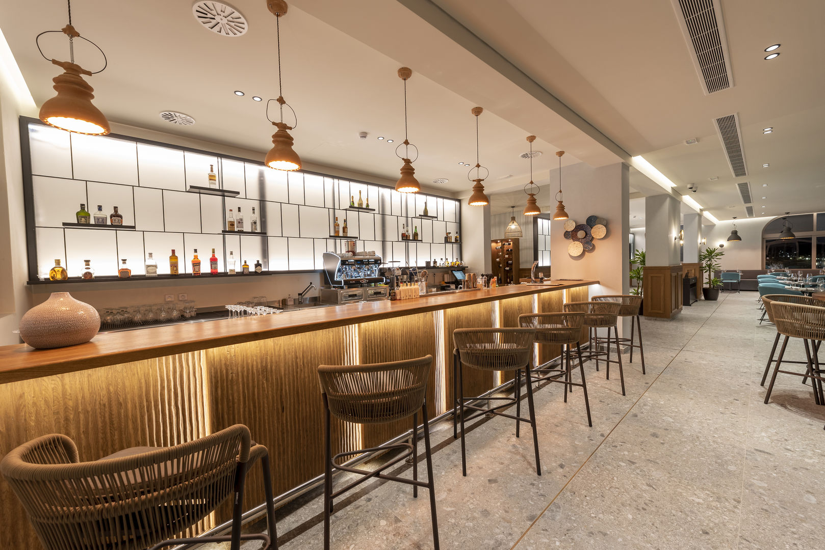Het resort biedt verschillende eetervaringen, met vijf restaurants waar je kunt genieten van internationale buffetten en traditionele Griekse gerechten, plus meerdere bars verspreid over het complex waaronder pool‑ en beachbars. Er is een strandtaverne met à‑la‑carte‑menu waar je kunt dineren met uitzicht op zee, en bij de bars kun je de hele dag door snacks, koffie en cocktails bestellen. Er zijn diverse thema‑avonden en speciale menu’s beschikbaar voor gasten met dieetwensen. Dankzij de uiteenlopende keuze is er voor elk wat wils, of je nu uitgebreid wilt dineren of een lichte lunch wilt aan het zwembad.