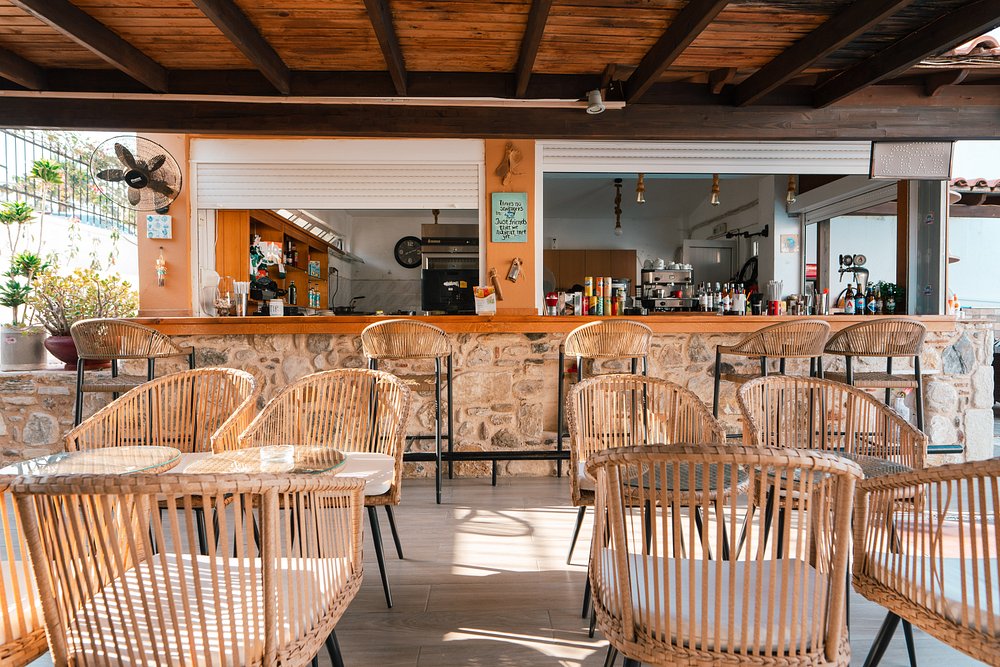 Bij Aspro Spiti kun je terecht bij de snack- en poolbar voor lichte maaltijden en drankjes gedurende de dag, en het restaurant serveert Mediterrane gerechten en ontbijtopties tegen een kleine toeslag. Doordat de accommodatie een kitchenette heeft, kun je ook zelf koken of kleine maaltijden bereiden in je unit. In de directe omgeving liggen tal van Griekse tavernes, cafés en restaurants waar je lokale specialiteiten zoals verse vis, souvlaki en mezze kunt proeven. Deze combinatie van onsite eet- en drinkmogelijkheden en lokale culinaire hotspots maakt je verblijf gevarieerd en aangenaam.