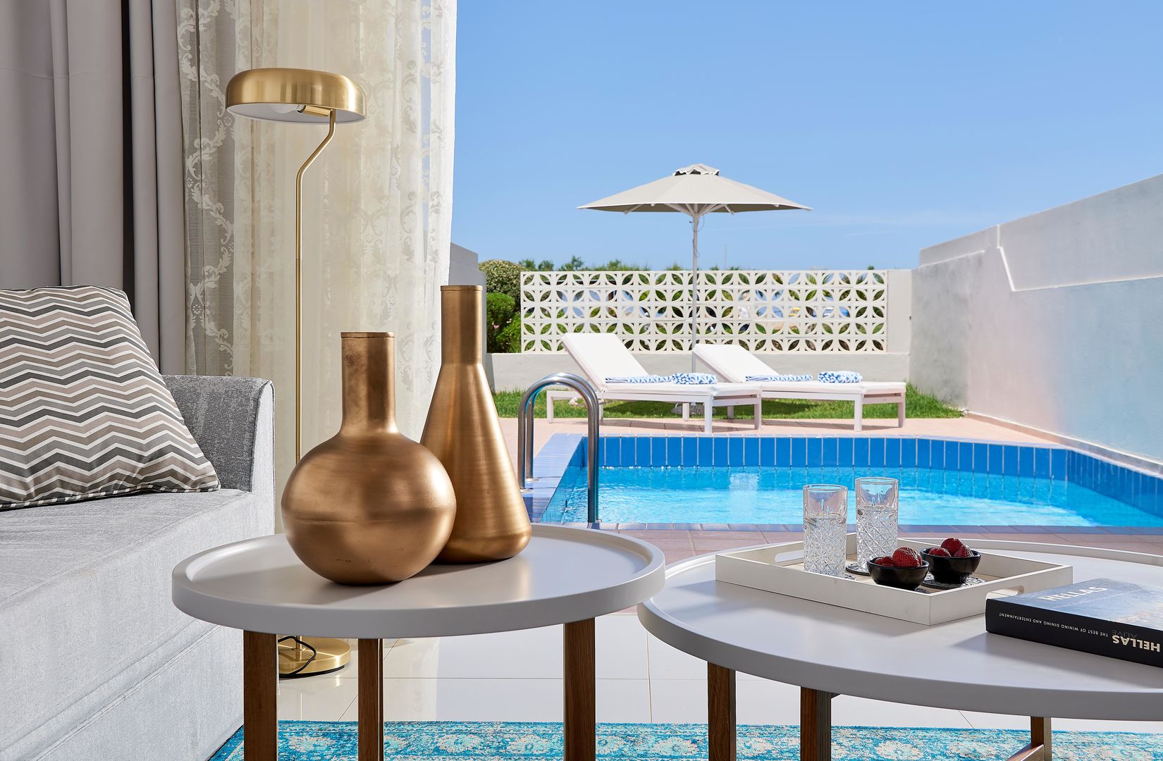 In de kamers bevinden zich een living en een badkamer, voor een aangenaam luchtklimaat zorgt airconditioning. In de meeste verblijven genieten de gasten van zijwaarts zeezicht van het balkon of het terras. Het mooie uitzicht op zee zorgt in veel accommodaties voor een heerlijke atmosfeer. De kamers beschikken over een tweepersoonsbed. Extra bedden of kinderbedjes kunnen worden aangevraagd. Bovendien zijn een kluis en een minibar beschikbaar. Ook een thee-/koffiezetapparaat behoort tot de standaardvoorzieningen. Een strijkset is voor het extra comfort van de gasten verkrijgbaar. Bovendien zijn een telefoon met directe buitenlijn, satelliettelevisie en Wi-Fi (kosteloos) beschikbaar. Tot de extra´s van de kamers behoren pantoffels. De badkamers zijn uitgerust met een douche en een bad. Voor het dagelijks gebruik zijn een föhn, een make-upspiegel en badjassen verkrijgbaar. Voor extra comfort in de badkamers zorgen cosmetische producten.