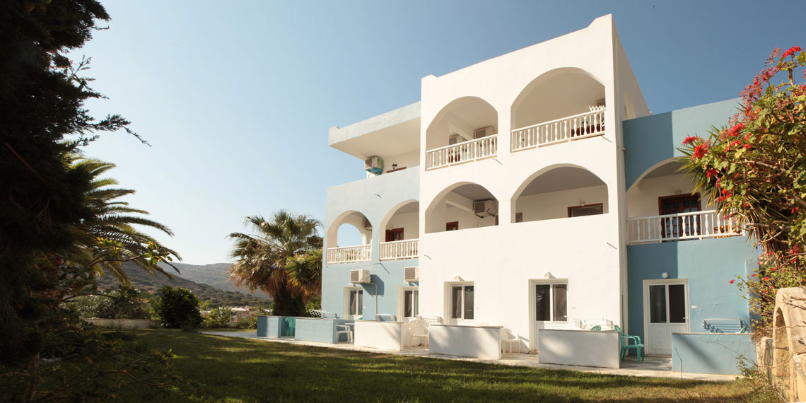 Marina Hotel ligt in het dorp Matala aan de zuidkust van Kreta, in een rustige omgeving net buiten het centrum. Het bekende zandstrand van Matala ligt op ongeveer 1 kilometer afstand en is eenvoudig te bereiken. In het centrum vind je gezellige tavernes, cafés en kleine winkels, evenals de beroemde rotsgrotten waar Matala om bekendstaat. De omgeving is ideaal voor uitstapjes naar historische plekken zoals het Minoïsche paleis van Phaistos en het mooie landschap van Zuid-Kreta.