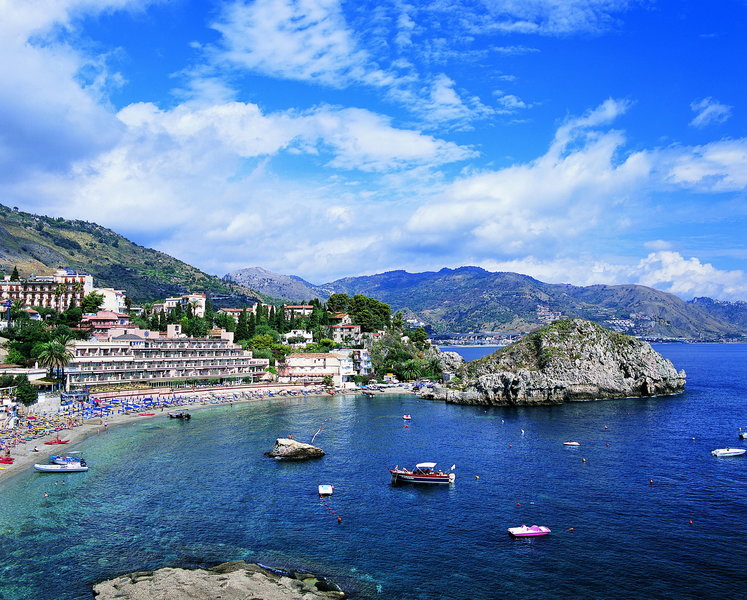 Dit exclusieve luxehotel ligt iets onder het stadscentrum van Taorminas, direct aan de betoverende badbaai van Mazzarò met eigen strandgedeelte (kiezelstrand). Naar de kabelbaan, die u iedere 15 minuten naar de stad brengt, is het ongeveer 60 meter. Winkelmogelijkheden, restaurants en bars bevinden zich binnen een straal van ongeveer 100 meter. De rijtijd naar de luchthaven Catania is ongeveer 1,5 uur (circa 60 kilometer).