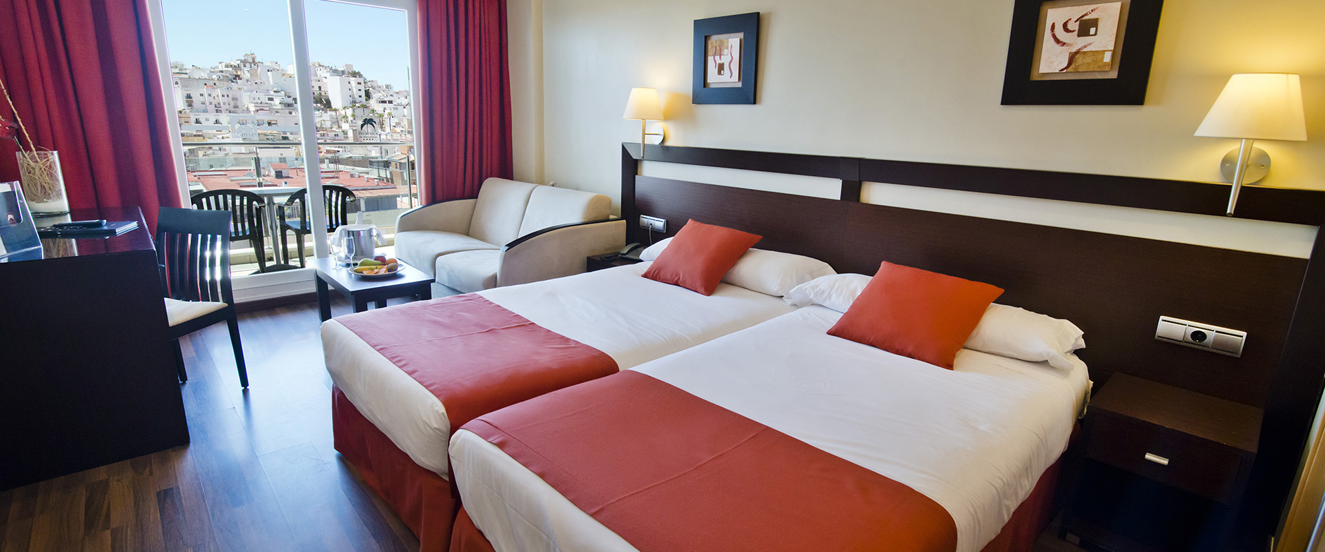 Hotel Bahia Almuñécar ligt in het centrum van de Spaanse badplaats Almuñécar aan de Costa Tropical, op slechts een paar minuten lopen van het brede zand‑ en kiezelstrand van Puerta del Mar. Door deze centrale ligging verblijf je dichtbij tal van restaurants, cafés, winkels en de boulevard, waardoor zowel stranden als stadse bezienswaardigheden eenvoudig te voet bereikbaar zijn. Het hotel staat op een korte afstand van historische plekken zoals het oude centrum en het kasteel van San Miguel, en je kunt met de auto ook uitstapjes maken naar de Marina del Este of de grotten van Nerja. De internationale luchthaven van Málaga ligt op ongeveer 80 tot 90 kilometer, wat een comfortabele ritafstand betekent voor aankomst en vertrek.