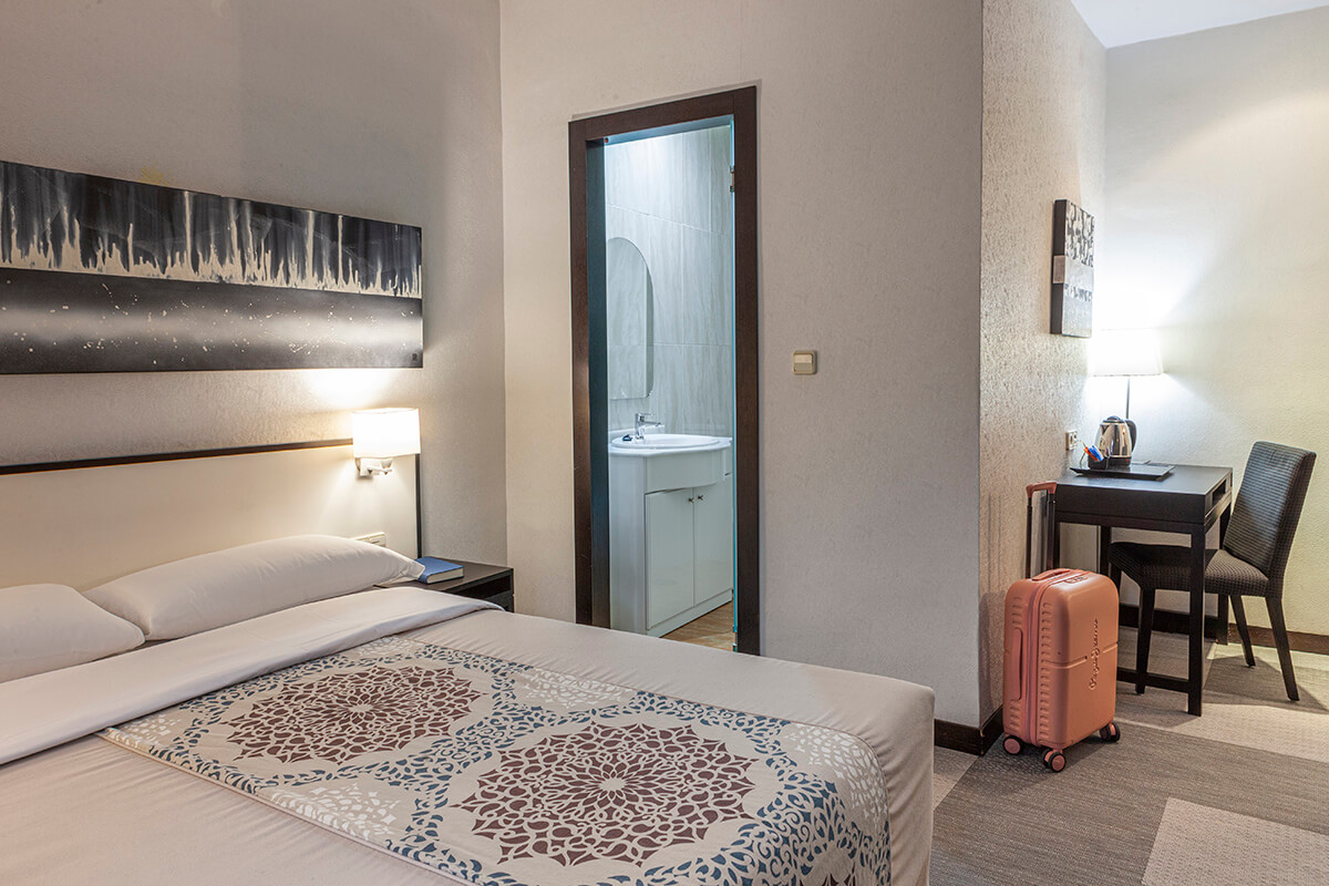 De kamers zijn modern en eenvoudig ingericht met airconditioning, gratis wifi, een flatscreen televisie en een eigen badkamer met douche en toiletartikelen voor een comfortabel verblijf. Sommige kamers hebben uitzicht op de straat of op het achterland van de stad, wat een aangename achtergrond geeft tijdens je verblijf. Je kunt kiezen uit standaardkamers en superiorkamers, waarvan sommige uitzicht op de Alhambra bieden, wat een bijzonder extraatje is. De inrichting is praktisch en geluiddicht, wat bijdraagt aan een rustige nachtrust ook al lig je midden in de stad. De kamers zijn geschikt voor solo‑reizigers, koppels en kleinere groepen, met extra voorzieningen zoals waterkoker en kluisje.