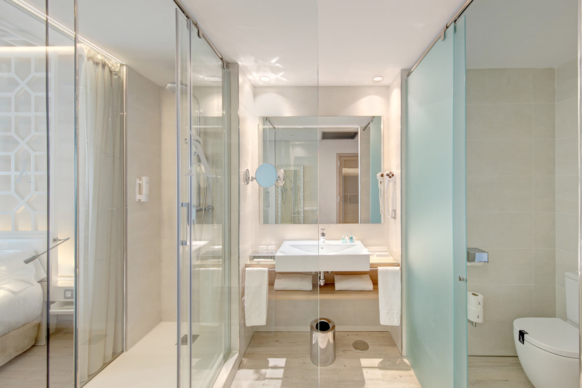 De kamers en suites zijn modern en licht ingericht met airconditioning, gratis Wi-Fi, flatscreen-tv, minibar, kluisje en koffie-/theefaciliteiten, wat bijdraagt aan een comfortabel verblijf. Veel kamers hebben een balkon of terras met uitzicht op de zee of de omgeving, waardoor je ’s ochtends kunt genieten van het mediterrane licht. Sommige kamers bieden extra privileges zoals toegang tot een privé-lounge met snacks en drankjes voor gasten die een speciaal servicepakket kiezen. De badkamers zijn uitgerust met douche, haardroger, badjas en gratis toiletartikelen, en de inrichting combineert comfort met een eigentijdse stijl.