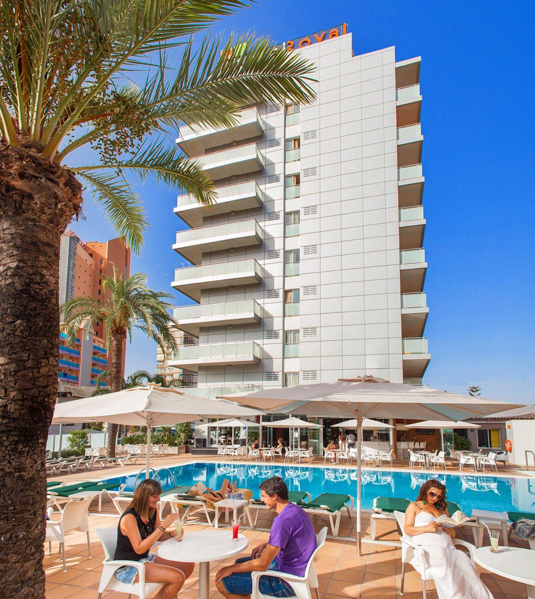 RH Royal is een viersterren hotel speciaal voor volwassenen (vanaf 16 jaar) met ongeveer 90 tot 95 kamers verspreid over negen verdiepingen. Er is gratis wifi door het hele gebouw, 24‑uurs receptie en uitgebreide service zoals roomservice en wasserij. Voor ontspanning zijn er wellnessfaciliteiten zoals sauna en jacuzzi, plus een buitenterras bij het zwembad met ligstoelen en parasols. Parkeren is mogelijk op het terrein tegen betaling, en er zijn voorzieningen voor gasten met een mobiliteitsbeperking.