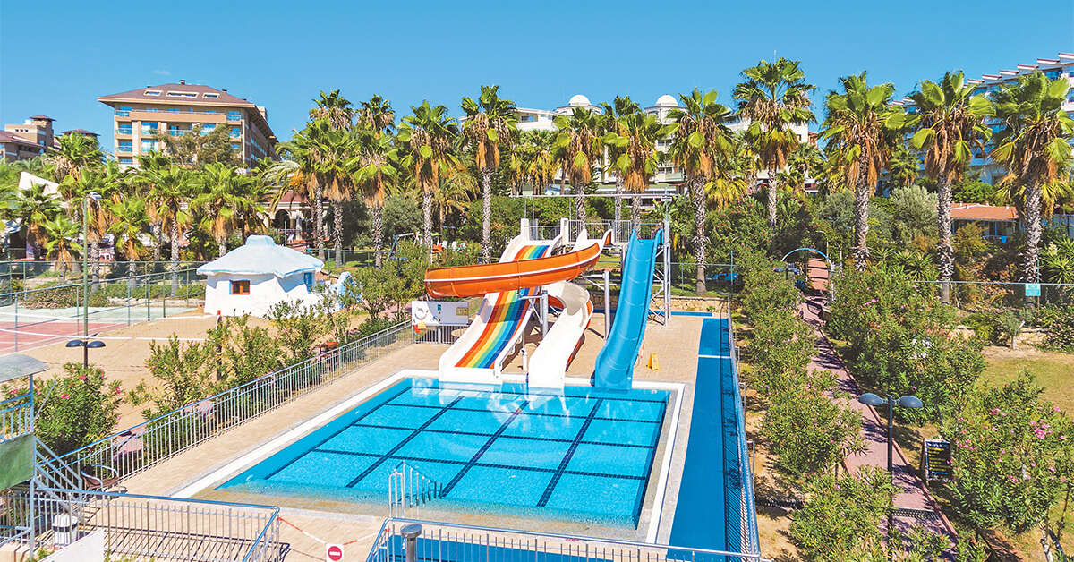 Het resort beschikt over twee zwembaden, waarvan één voorzien is van glijbanen voor extra waterplezier. Rond de zwembaden staan comfortabele ligbedden en parasols klaar op het zonneterras. Het wellnesscentrum biedt een sauna, Turks stoombad, massages en schoonheidsbehandelingen voor totale ontspanning. Voor sportieve gasten zijn er faciliteiten zoals fitness, tennis, tafeltennis, bowling en darts. Overdag en ’s avonds verzorgt het animatieteam shows, livemuziek en diverse activiteiten voor jong en oud.