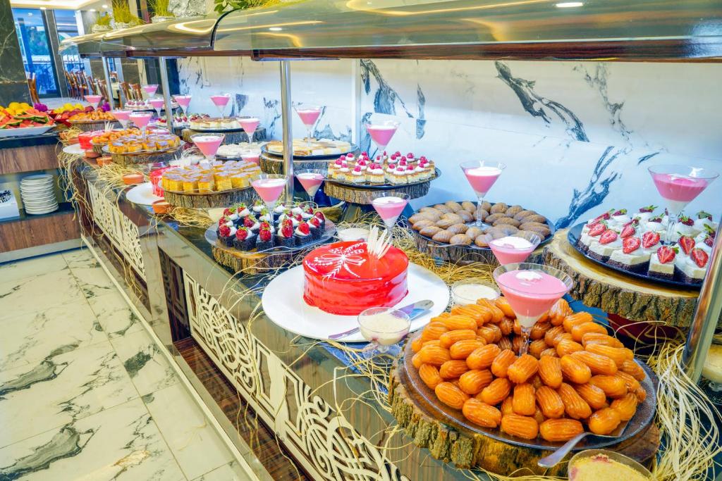 In het restaurant van het hotel worden dagelijks maaltijden geserveerd in buffetvorm. Het aanbod bestaat uit een combinatie van Turkse gerechten en internationale favorieten. Afhankelijk van je verblijf kun je kiezen voor logies met ontbijt of een all inclusive formule. Voor drankjes en kleine snacks kun je terecht bij de bar van het hotel. De ontspannen sfeer in het restaurant maakt het een fijne plek om de dag te beginnen of af te sluiten.