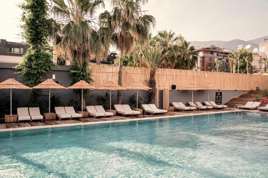 Voor sportieve activiteiten en vermaak biedt het hotel een fitnessruimte, yogalessen en diverse watersportmogelijkheden op het strand via lokale aanbieders. Rondom de zwembaden heerst een ontspannen sfeer met poolside DJs en muziek, wat bijdraagt aan een levendige vakantie‑ervaring. De spa‑ en wellnessruimte met hammam en sauna is perfect voor wie wil ontspannen na een dag in de zon of na het sporten. In de omgeving vind je daarnaast volop recreatieve activiteiten zoals fietsen, duiken en wandelroutes langs de kust. ’s Avonds kun je genieten van cocktails en muziek in de bars of de levendige nachtleven van Alanya verkennen.