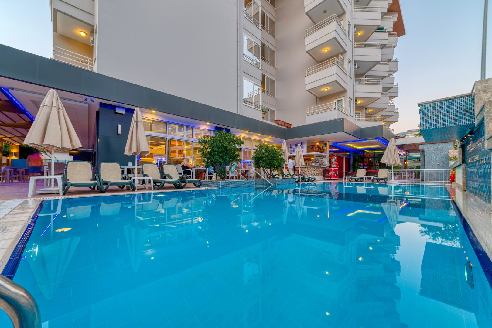 Voor sport en ontspanning kun je gebruikmaken van fitnessfaciliteiten en beachvolleybal op het strand, en op het zwembadterrein zijn er vaak extra speelmogelijkheden zoals darts of tafeltennis. Watersporten worden op het nabijgelegen strand aangeboden door lokale aanbieders, zoals jetskiën en parasailen, wat leuke afwisseling biedt op warme dagen. Voor kinderen is er een apart kinderbad bij het zwembad zodat de kleintjes veilig kunnen spelen, en het hotel richt zich op een vriendelijke, familievriendelijke sfeer. Na zonsondergang kun je in de directe omgeving genieten van het nachtleven van Alanya met bars en clubs op loopafstand.