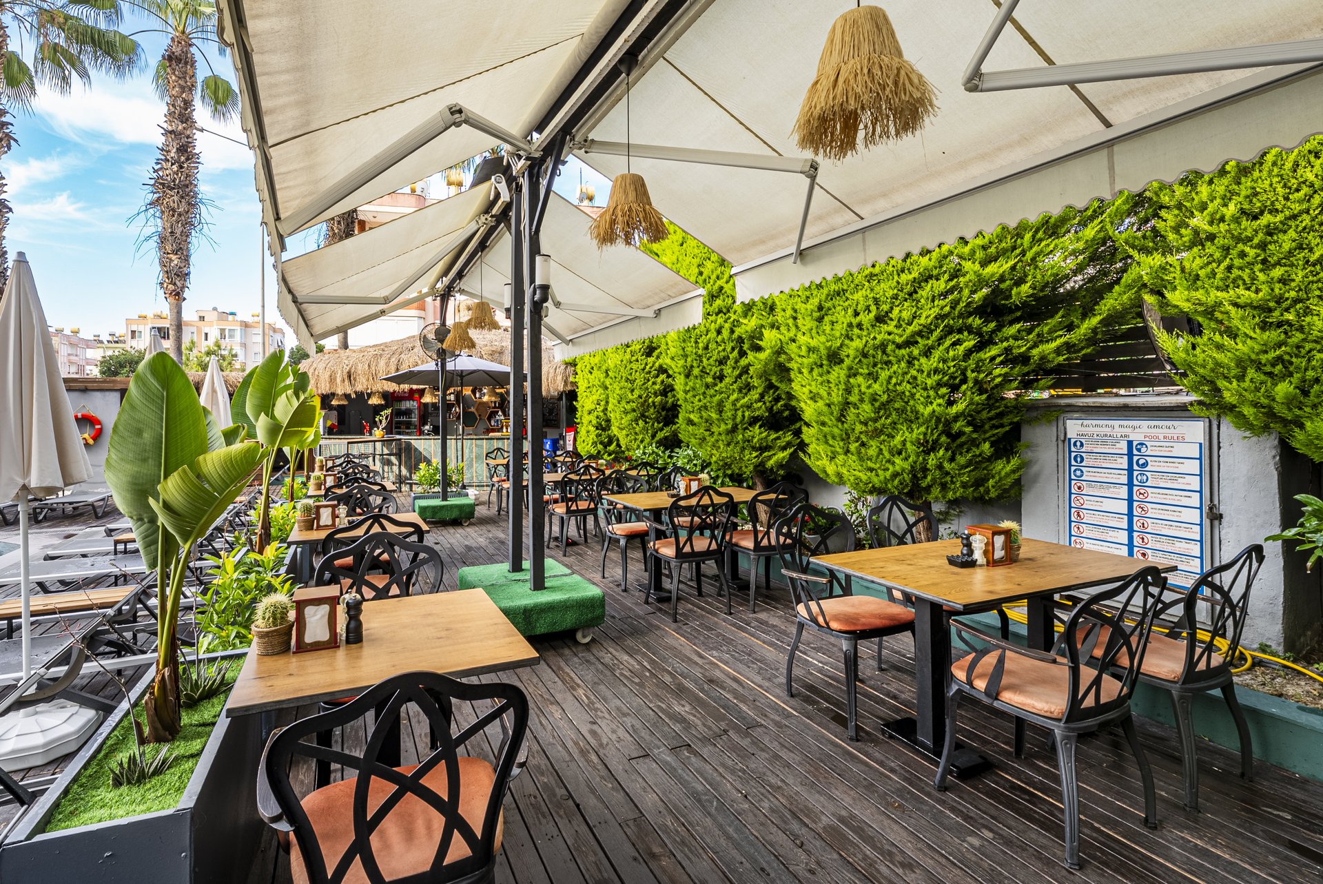 HMA Hotel & Suites biedt gasten ontspanningsmogelijkheden zoals een buitenzwembad met zonneterras en ligbedden om comfortabel te zonnen. Er zijn ook spel- en recreatiemogelijkheden, waaronder tafeltennis en fietsen of mountainbiken via externe aanbieders, ideaal voor wie actief wil blijven tijdens de vakantie. In de directe omgeving van het hotel vind je bovendien tal van sport- en entertainmentopties, zoals watersporten op het strand of culturele uitstapjes. Voor kinderen is er een kinderbad. De centrale ligging maakt het eenvoudig om het nachtleven en lokale entertainment van Alanya te ontdekken.