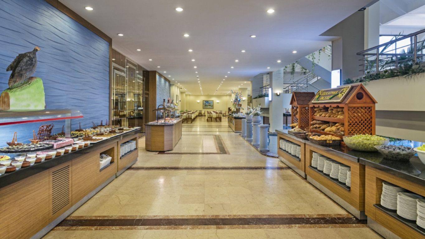 In de restaurants van het hotel worden dagelijks ontbijt, lunch en diner geserveerd, meestal in buffetvorm. De keuken combineert Turkse specialiteiten met internationale gerechten. Daarnaast zijn er bars waar gasten terechtkunnen voor drankjes en lichte snacks. Afhankelijk van de geboekte formule kunnen gasten verblijven op basis van halfpension of all inclusive, waarbij maaltijden en geselecteerde drankjes inbegrepen zijn. De informele en ontspannen sfeer maakt het prettig om van de maaltijden te genieten.