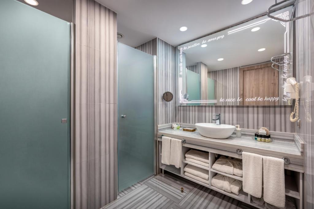 Airconditioning en een verwarming zorgen voor een prettig luchtklimaat in de kamers. De gasten kunnen vanaf het balkon of het terras van het uitzicht op zee genieten. De met vloerbedekking uitgeruste kamers beschikken over een tweepersoonsbed of een slaapbank. Er zijn aparte slaapkamers aanwezig. Voor de jongste gasten staan kinderbedjes klaar. Bovendien zijn een kluis en een minibar beschikbaar. Ook een thee-/koffiezetapparaat behoort tot de standaardvoorzieningen. Voor vakantiecomfort zorgen een telefoon met directe buitenlijn, een tv met satelliet-/kabelontvangst, een radio en Wi-Fi (kosteloos). Tot de extra´s van de kamers behoren pantoffels. In de badkamer, van een douche voorzien, vinden de gasten een föhn en badjassen. Bovendien zijn rolstoelvriendelijke kamers met een barrièrevrije badkamer te boeken. Het verblijf beschikt over gezinskamers en niet-rokerskamers.
